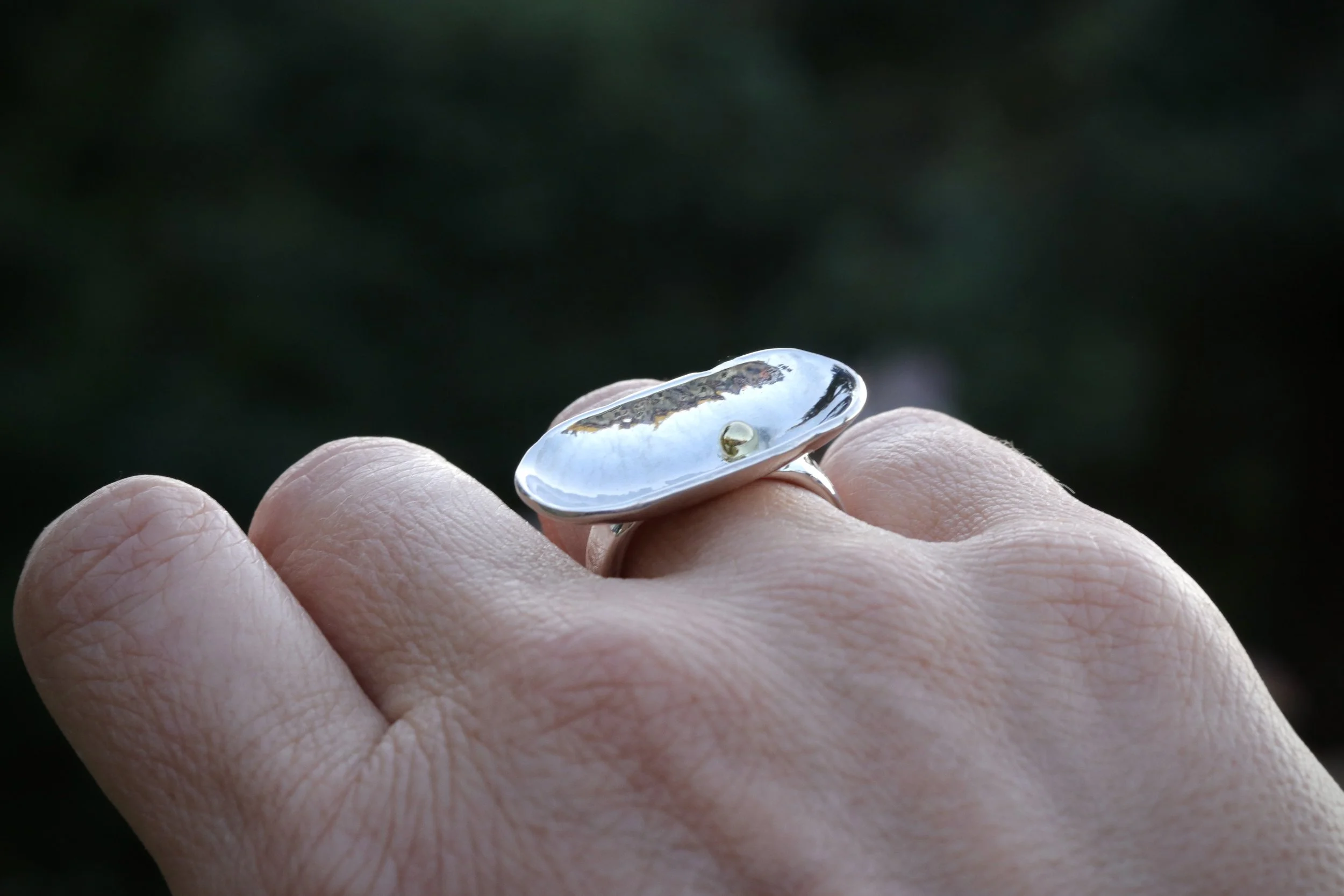 Categories: All Artisan Unique Bracelet Classic Time Honored Gold Mixed Metal Necklace Oxidized Silver Pendant Ring Silver and Gold All | Artisan Unique | Bracelet | Classic Time Honored | Gold | Mixed Metal | Necklace | Oxidized Silver | Pendant | Ring | Silver and Gold | Holding Space No. 03 - Mixed Metal Ring of 22k Gold & Sterling Silver $425.00 Harmony of Movements - Garnet & Sapphire Cuff Bracelet in Sterling Silver $700.00 Holding Space No. 02 - Mixed Metal Ring with 22K Gold Sphere & Sterling Silver $415.00 Four Corners - Persian Turquoise Ring in 22k Gold & Sterling Silver $685.00 Sold out Solar Flare - Egyptian Turquoise Ring in 22k Gold and Sterling Silver .925 $1,100.00 Ancient Rays - Number 8 Mine Turquoise Ring in 22k Gold and Sterling Silver .925 $935.00 Aqua Vibes - Aquamarine and Tsavorite Garnets Pendant in 22k Gold & Oxidized Sterling Silver .925 $2,400.00 Poppy Top - Ruby Sun Disc Ring in 22k Gold and Sterling Silver .925 $1,600.00 Your Brain on Nature - Flower Obsidian Pendant Necklace in 22k Gold & Sterling Silver .925 $1,100.00 Mother Earth Talking Story - Dendritic Limestone Pendant Necklace in 22k & Oxidized Silver $940.00 Offset As a Way - Blackened Silver .925 & 22K Gold Long Chain Necklace $660.00 Sold out Metal Canvas No 6. - Cigar Band Ring in 22k Gold and Sterling Silver .925 $3,410.00 Sold out Contrast and Diamond Solitaire Ring $265.00 Barbara Oliver Collection No. 04 -Graduated Turquoise Necklace in Silver .925 & 22k Gold $1,150.00 Sold out Quieting of The Mind - Green Tourmaline and Diamond Cuff Bracelet in 22k Gold and Oxidized Sterling Silver $2,100.00 Sold out Whoa Darlin'! - Darling Darlene Turquoise Cuff in 22K Gold & Sterling Silver .925 $1,800.00 Sold out The Heart Keeper- Pink Tourmaline and Sapphire Pendant in 22k Gold & Oxidized Sterling Silver .925 $2,200.00 Sold out The Secret Keeper - Indicolite Tourmaline and Jedi Red Spinels Pendant in 22k Gold & Oxidized Sterling Silver .925 $2,800.00 Sold out Emerald Shield Maiden - Emerald Ring in 22k Gold and Silver .925 $1,385.00 Sold out Cool and Calm - Blue Tourmaline Shield Ring in 22k Gold & Silver .925 $1,115.00 Sold out Pink Tourmaline Shield Ring in 22K Gold & Sterling Silver $1,085.00 Sold out ¡Ooooh Baby!- Turquoise Shield Ring in 22K Gold & Sterling Silver .925 $1,475.00 Sold out